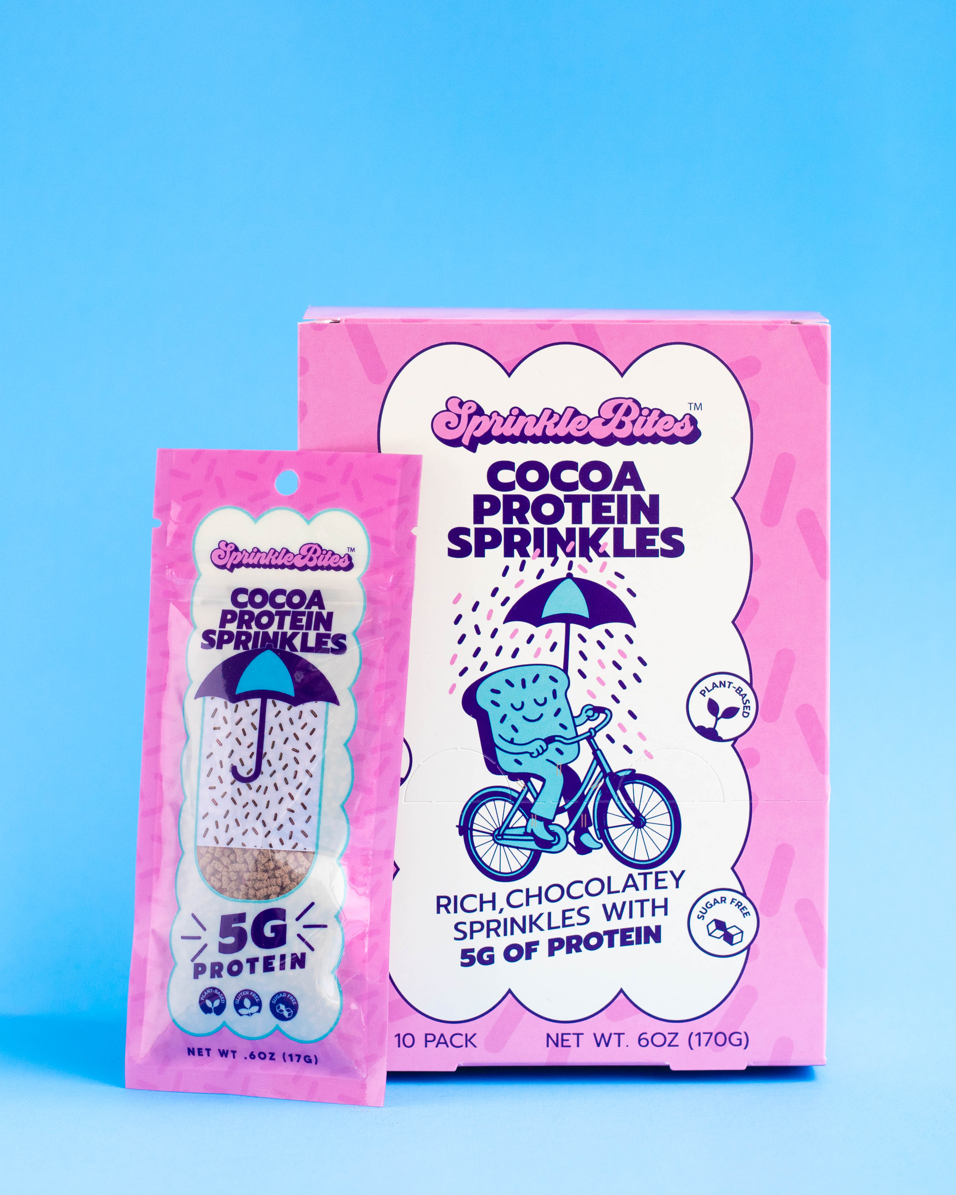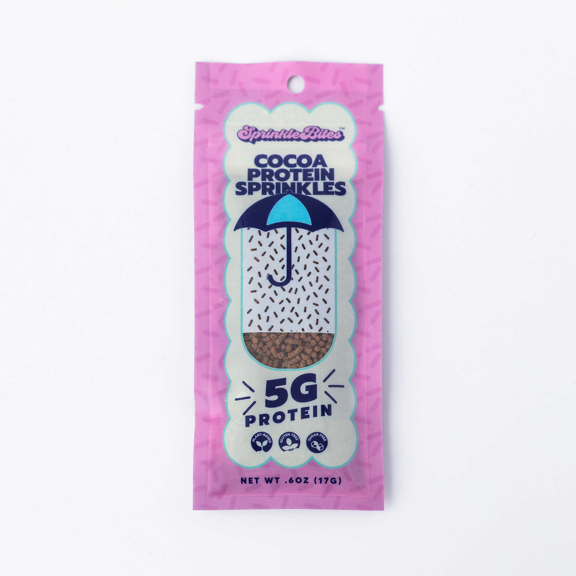 Includes: 10 resealable packets of Cocoa Protein SprinkleBites™